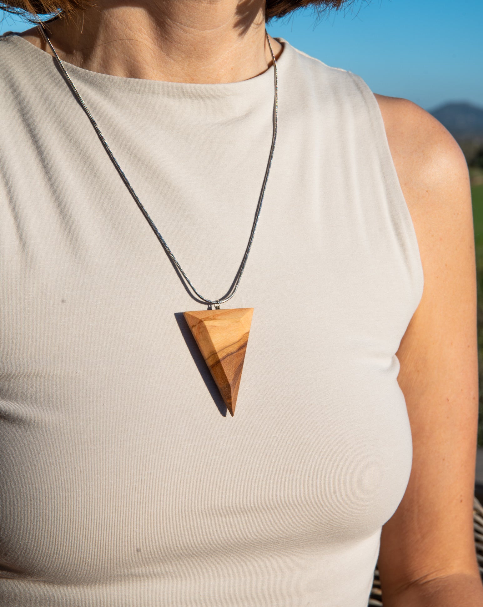 "Delta," our handcrafted triangle olive wood pendant, symbolizing the dynamic nature of change and growth that life brings. The triangle is representative of the Greek Symbol, DELTA, which in science and mathematics represents "change" Life is ever-changing, and we must learn to let go and experience those changes so that we can learn and grow from them.