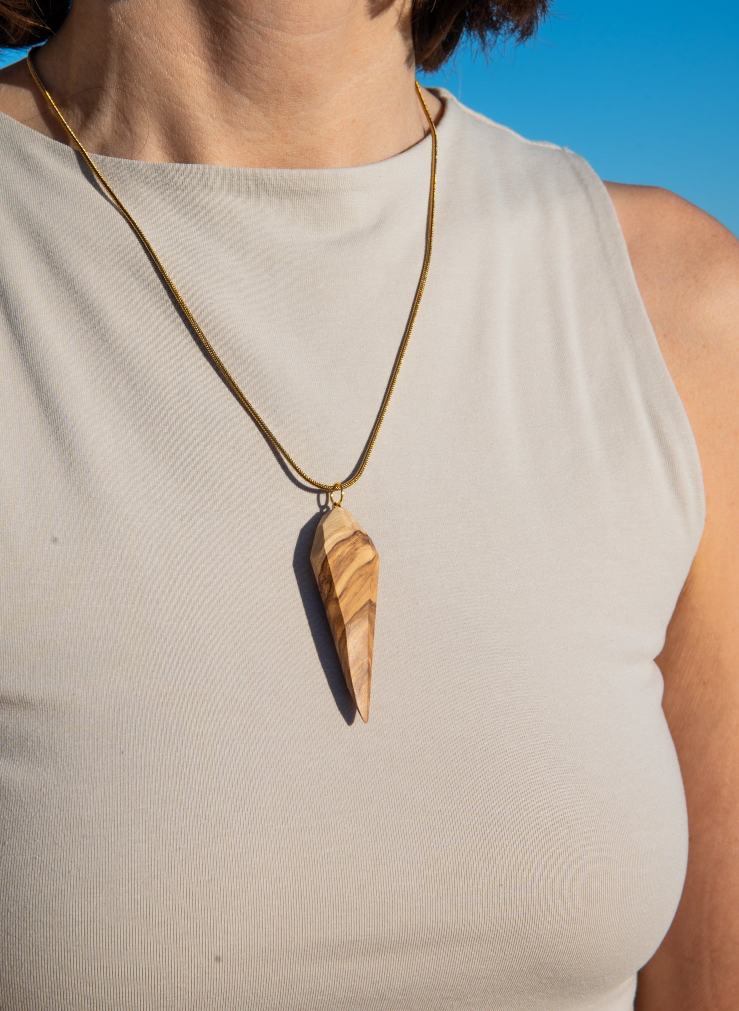 Introducing "Eva," our exquisite olive wood pendant, lovingly shaped into a graceful droplet that showcases the mesmerizing colour gradations of its natural origins. Each purchase of Eva not only adds a touch of organic elegance to your collection but also contributes to a greener planet, as we proudly donate part of the proceeds to an NGO dedicated to reforestation. Wear Eva and carry the essence of nature with you, while supporting a cause that nurtures the earth.