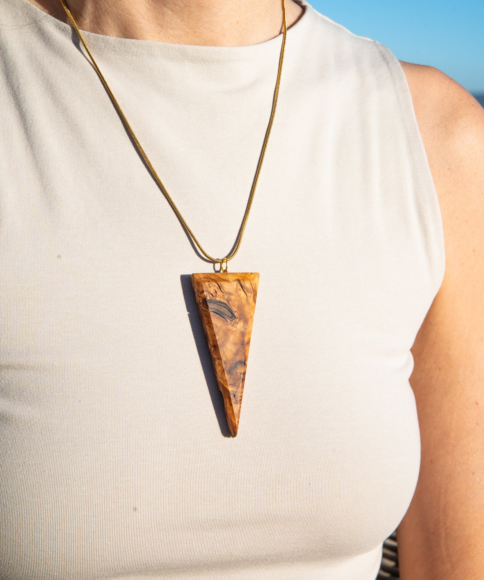Introducing "Isosceles," a meticulously handcrafted olive wood pendant inspired by the sacred geometry linking Greece's ancient temples - the Parthenon, Temple of Poseidon, and Temple of Aphaia, which form an isosceles triangle on the map. This pendant not only embodies the harmony and mystery of these historic sanctuaries but also carries the essence of nature within its unique grain.