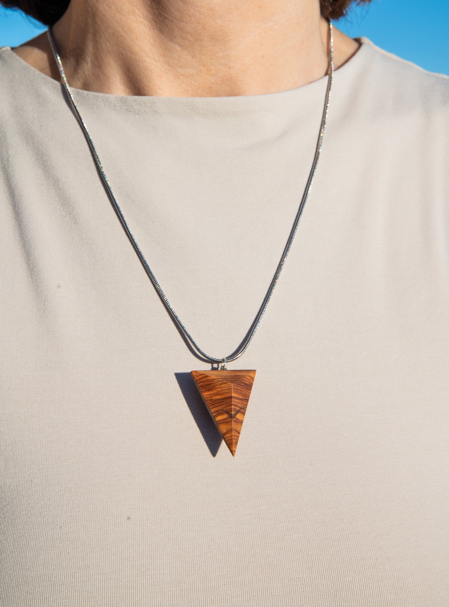Introducing "Trinity," a handcrafted olive wood pendant whose tri-pointed shape beautifully symbolizes the Christian doctrine of unity within the Father, Son, and Holy Spirit. This pendant is not only a statement of faith but also a connection to the natural world, crafted from the earth's own creations.
